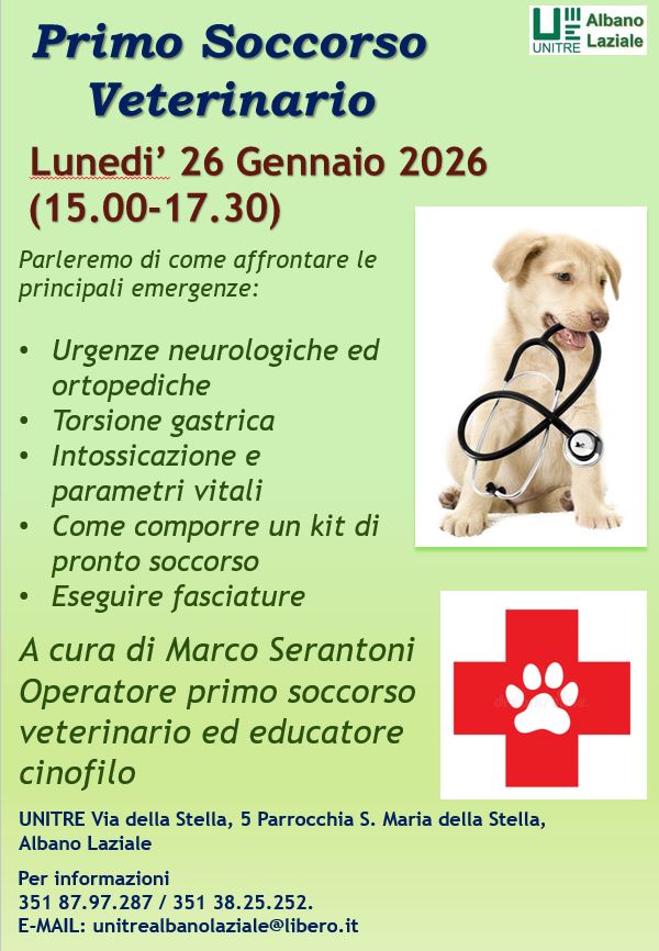 L'educatore cinofilo Marco Serantoni propone un'interessante conferenza rivolta a tutti i soci dell'UNITRE. Nel file allegato, l'esperto spiega come affrontare le principali emergenze dei nostri amici a quattro zampe.
